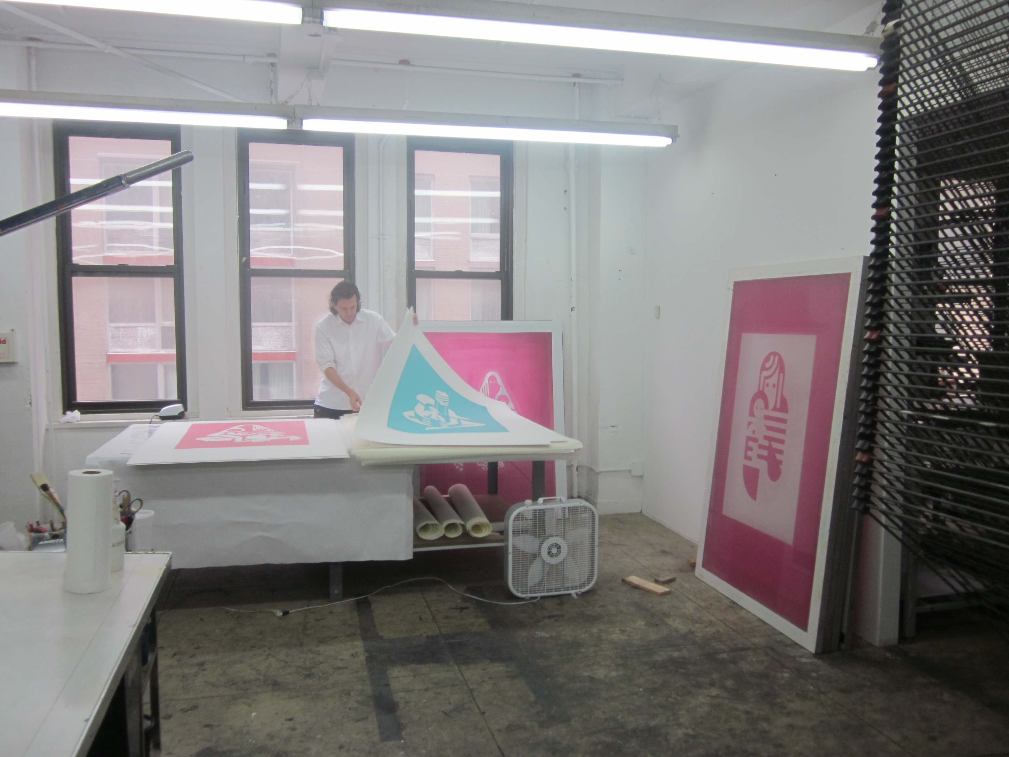 Lower East Side Printshop is delighted to introduce a series of screenprint monoprints by renowned artist Ryan McGinness, Mother & Child through the Printshop’s Publishing Residency Program in 2015. McGinness started with sketches from life and photo sessions shortly after the birth of his first child in 2011. He then made a series of progressive drawings, refining them until he achieved a highly abstracted representation of the figures. In this playful series of screenprints, he overlapped and interlaced eight different drawings of his wife and daughters in over twenty colors, producing unique and distinct prints.