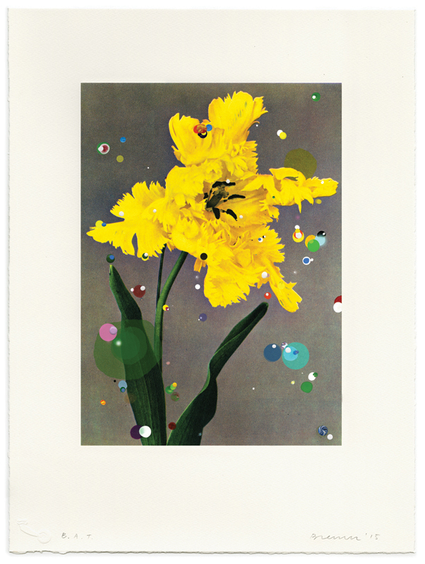 © Sebastiaan Bremer 2015, “Bloemen: Parkiet Tulp Sunshine,” archival inkjet print, hand painting, and Mylar confetti collage, 12″ x 8.5″ image, 18″ x 13.5″ sheet, edition of 6. Not available.