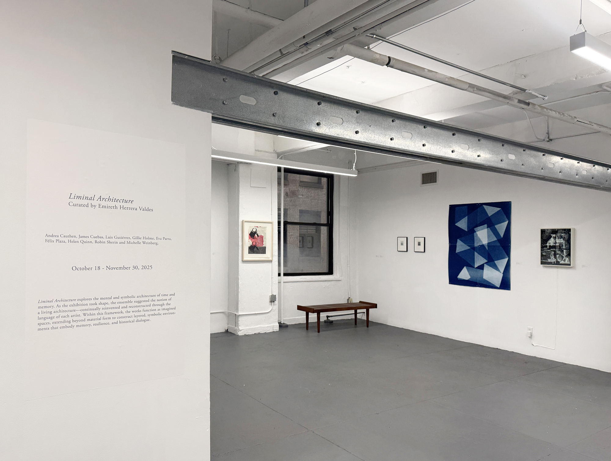 The Lower East Side Printshop is delighted to present Liminal Architecture, a group exhibition curated by Emireth Herrera Valdés. Through the work of Andrea Cauthen, James Cuebas, Luis A. Gutiérrez, Gillie Holme, Eva Parra, Félix Plaza, Helen Quinn, Robin Sherin, and Michelle Weinberg, this show explores the mental and symbolic architecture of time and memory. As the exhibition took shape, the ensemble suggested the notion of a living architecture—continually reinvented and reconstructed through the language of each artist. Within this framework, the works function as imagined spaces, extending beyond material form to construct layered, symbolic environments that embody memory, resilience, and historical dialogue.