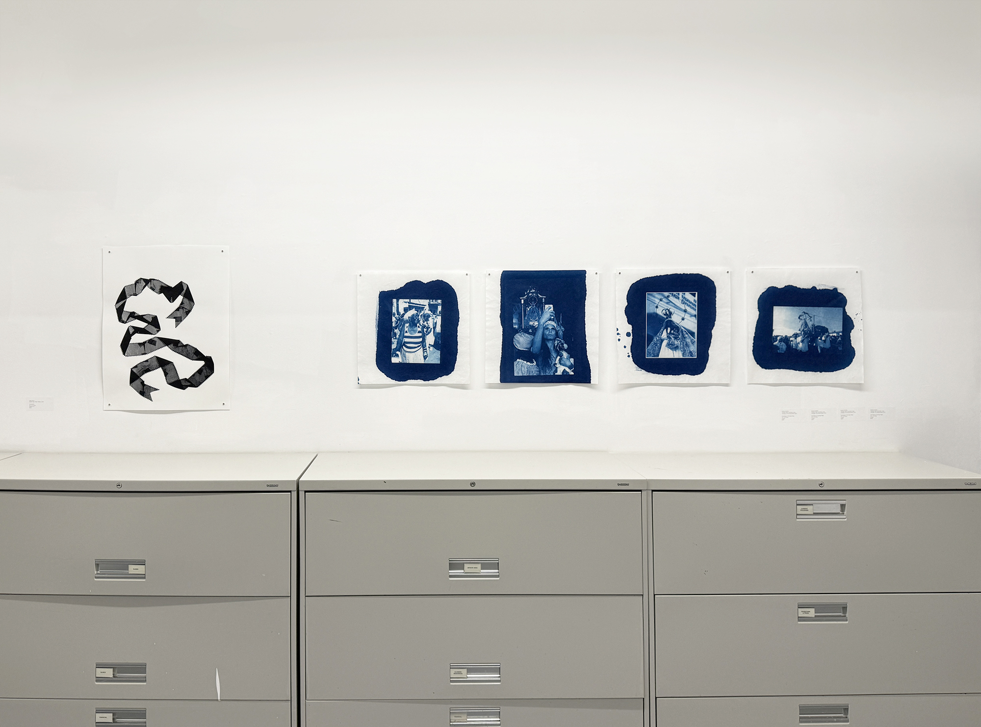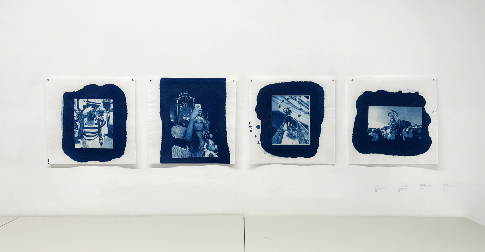 In Yemayá, estoy volviendo a casa (Yemayá, I’m Coming Home) (2025), Andrea Cauthen explores the African Diaspora and the spirituality of water through cyanotypes inspired by Regla Yemayá ceremonies in Cuba. Luis A. Gutiérrez’s Desde La Raiz 04 and Desde La Raiz 05 (2025) examine colonial legacies and manual labor, reinterpreting archival and found materials to produce multilayered paintings and videos that reveal everyday rituals and hidden memories. In Venere Nera-blu and Venere Nera-Rosado (2020), Félix Plaza addresses discrimination, representation, and cultural memory, focusing particularly on women of color by juxtaposing images highlighting social inequities. James Cuebas’s Abuela Jacinta, Puerto Rico (2024) and La Falcona, Bayamón, Puerto Rico (2024) use historical gum bichromate printing to evoke nostalgia, transforming each image into an intimate, imagined space where memory and perception converge.