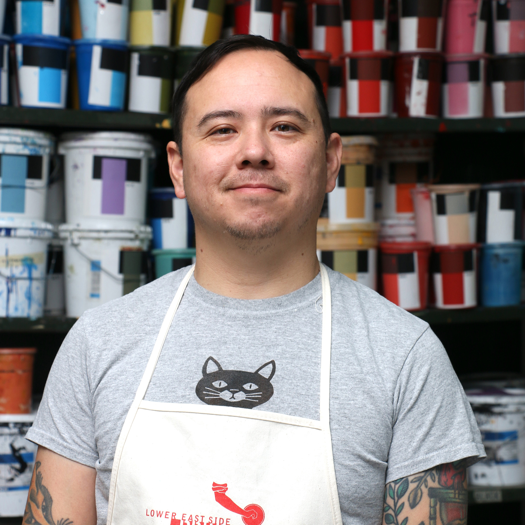 Nathan Catlin is the Master Printer at Lower East Printshop. Catlin has over 15 years of experience as an artist and collaborative printer. He is an adjunct professor at Columbia University School of the Arts, where he served as Shop Manager, Assistant Printer, and Master Printer at the LeRoy Neiman Center for Print Studies from 2012 until summer 2025. Catlin received his BFA in Printmaking from San Francisco Art Institute before receiving his MFA from Columbia University School of the Arts in 2012. Catlin works in a variety of media, including printmaking, painting, sculpture, stained glass and site specific murals. He has shown his work both domestically and internationally.