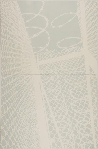 fencing and then up into the sky. The image’s fracture over