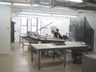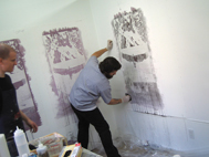 Matthew Day Jackson (right) working with Doug Bennett in the private