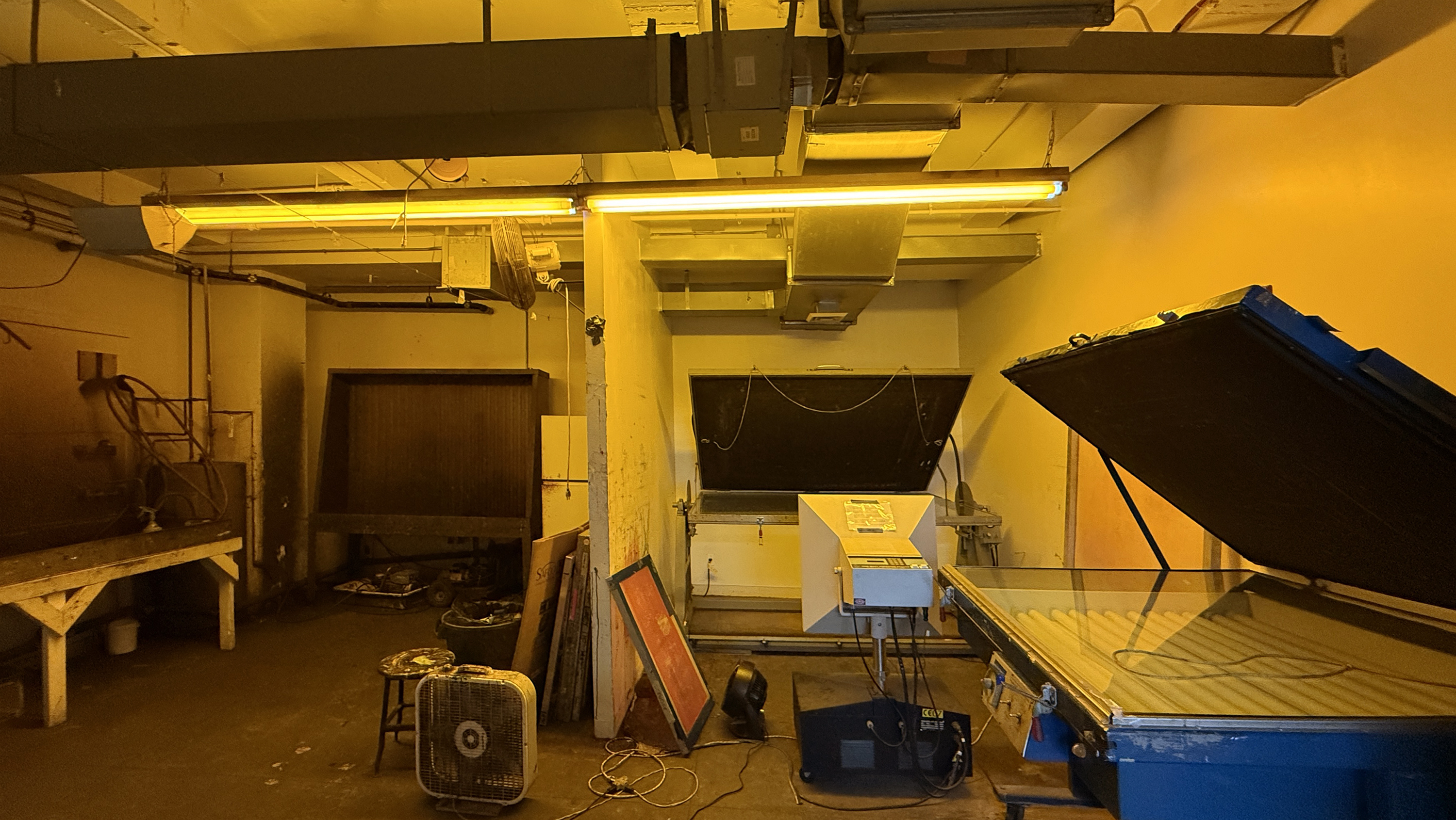The darkroom is accessible 24/7 to artists working in the community studio. It has adjustable exhaust ventilation.