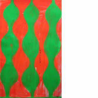 Born in 1954 in Washington, DC, Martin lives and works in Brooklyn, NY. He received his BFA from the School of Visual Arts and attended Yale University. In this work the artist paints his signature motif of broad, wavy bands in an exuberant color palette. His abstract compositions are deeply engaged with some of his favorite music and are known for his use and delight in working with unexpected materials. Select exhibitions include Mitchell-Innes & Nash, NY; Edward Thorp Gallery, New York, NY; Envoy Gallery, New Yok, NY; Bravin Lee Programs, New York, NY; Kunsthalle Düsseldorf, Germany; and the Corcoran Gallery of Art, Washington, DC. Martin is the recipient of fellowships from the National Endowment for the Arts, the New York Foundation for the Arts, the John Simon Guggenheim Memorial Foundation, and The Pollock-Krasner Foundation Grant. Chris Martin is represented by Mitchell-Innes & Nash Gallery, New York, NY.