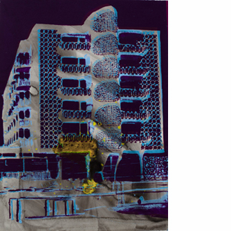 Continuing his exploration of modernist buildings and their architectural allure and romantic evocations, both symbolically and aesthetically, Perez visits the historic Hotel Ponce-Intercontinental in Ponce, Puerto Rico as the subject. The print explores the building’s grandness as a cultural icon and its architectural gentle playfulness. Perez approaches his motif as a painterly abstraction, through a very sensuous treatment of color, vibrant texture, and composition. This print combines layers of hand painting and screenprinting to achieve its richness.